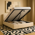 Futura originelles Stauraumbett mit Hubbett, schicker Stoffbezug in Sand: automatisches Öffnen per Fernbedienung und flexibler Lattenrost aus Holz