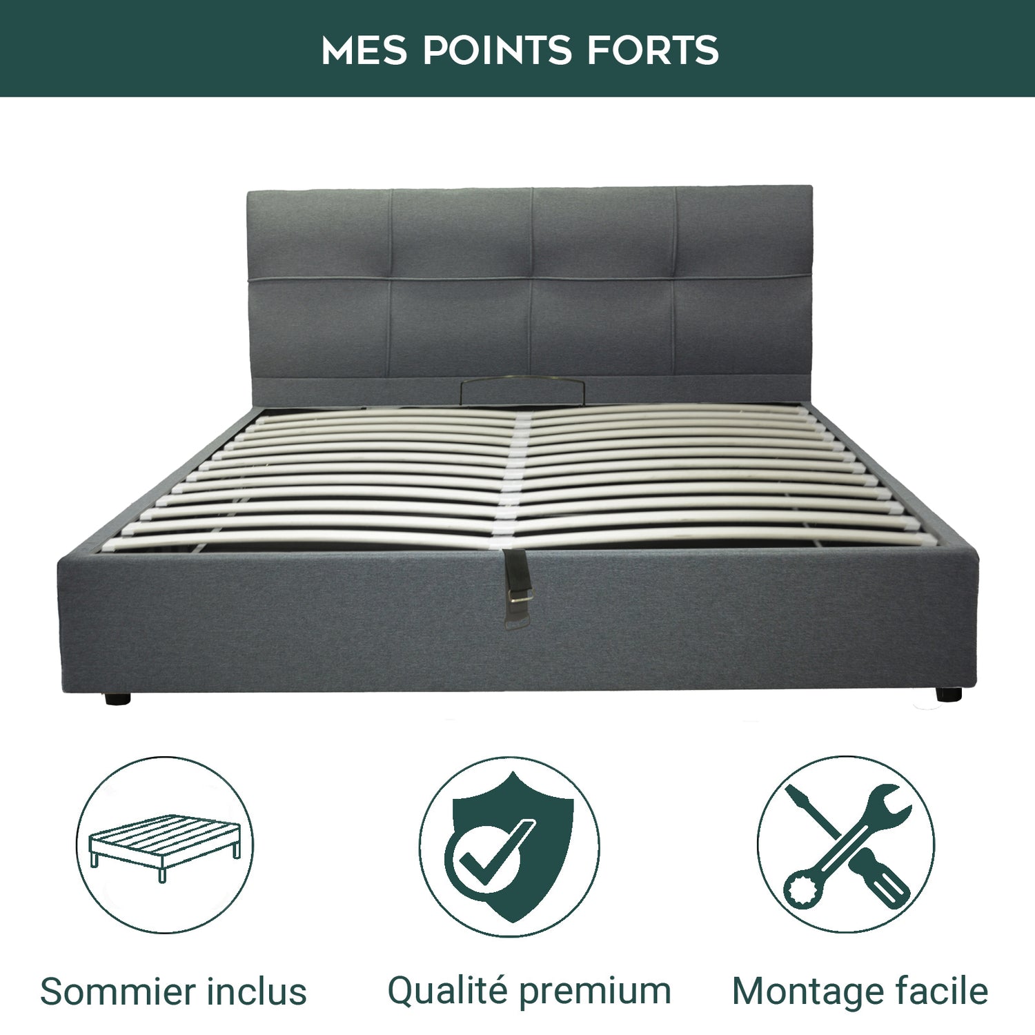 * Matratzenauflage: Der Bettrahmen ist, auch mit Aufbewahrungssystem (wie einer Kommode oder Schubladen), so konzipiert, dass er dank einer stabilen Struktur die Matratze optimal stützt.