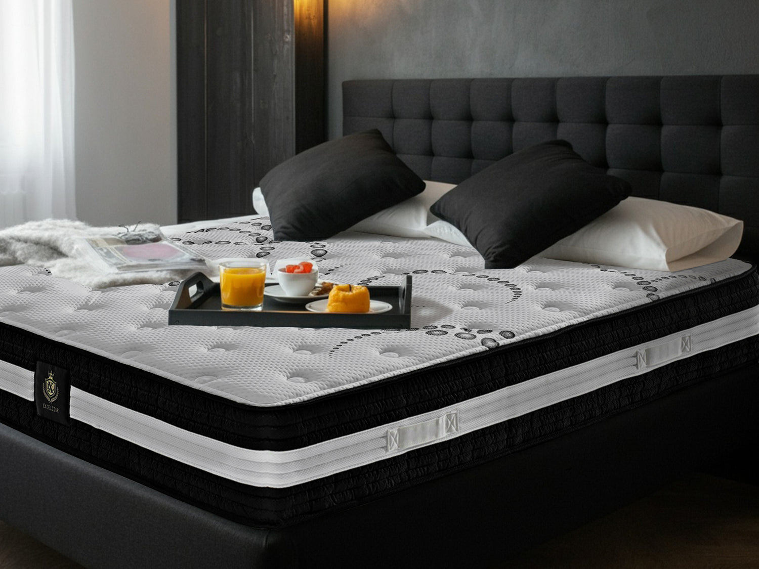 - Die Kombination aus Taschenfedern und Schaumstoff ermöglicht eine reibungslose Luftzirkulation, sorgt für effiziente Belüftung und anhaltende Frische, selbst in den heißesten Nächten.