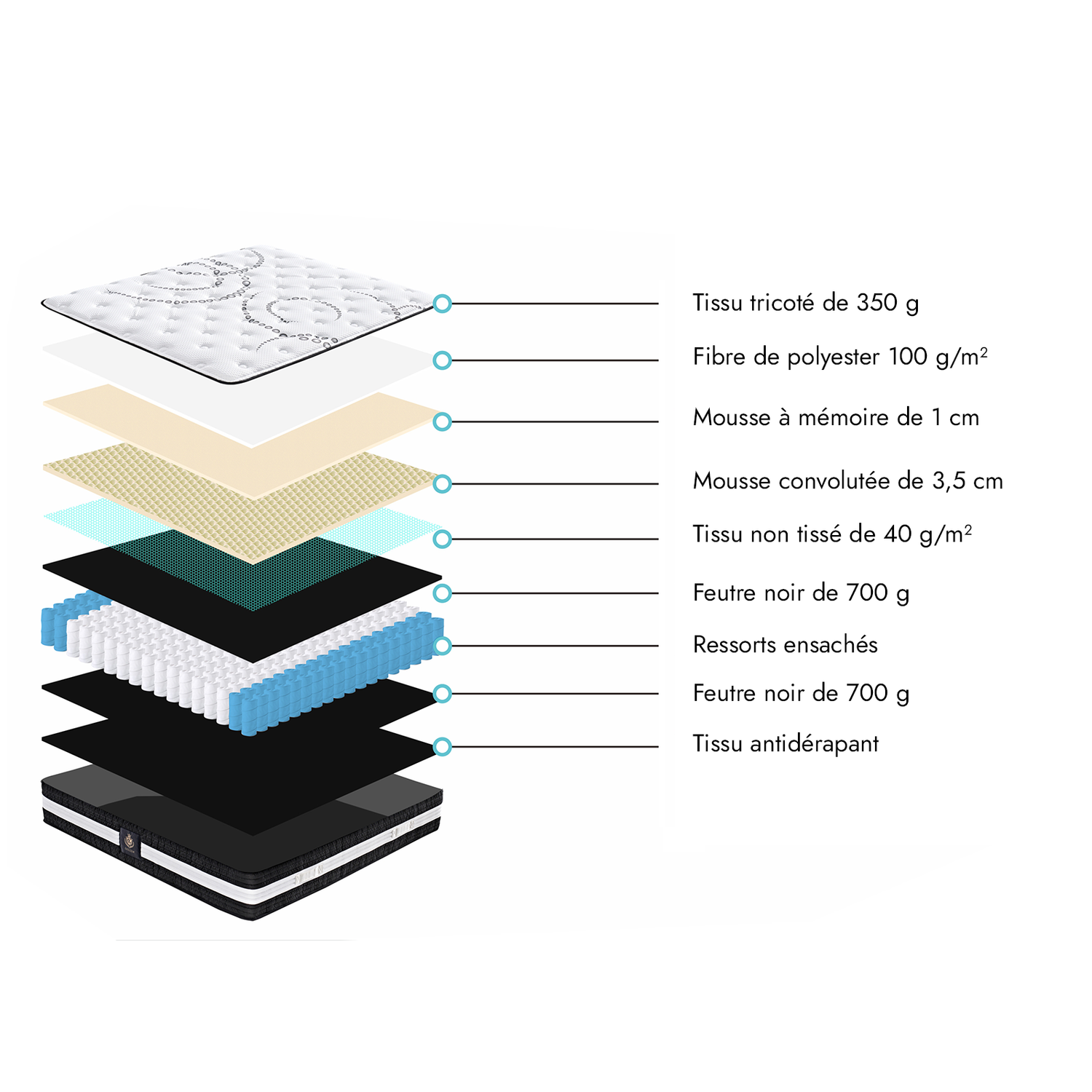 - Diese Matratze bietet eine bemerkenswerte Dicke, die eine optimale und ausgewogene Unterstützung gewährleistet und gleichzeitig ein Gefühl von umhüllendem Komfort vermittelt. Es passt sich Ihrer Körperform an und gewährleistet die ideale Festigkeit für einen erholsamen Schlaf.