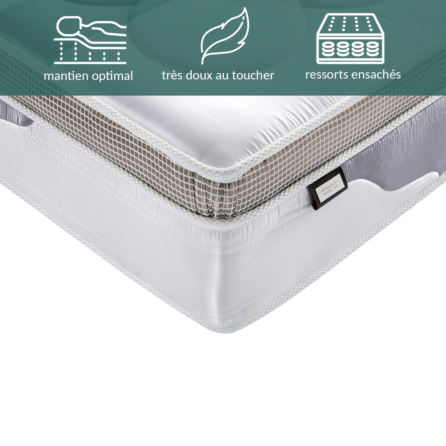Es wurde für Ihr Wohlbefinden konzipiert, verfügt über eine Anti-Milben-, Anti-Bakterien- und Anti-Schimmel-Behandlung und erfüllt mit der ISO 9001®-Zertifizierung die anspruchsvollsten Standards. Es ist praktisch und umweltfreundlich und wird mit einer wiederverwendbaren Tragetasche geliefert.