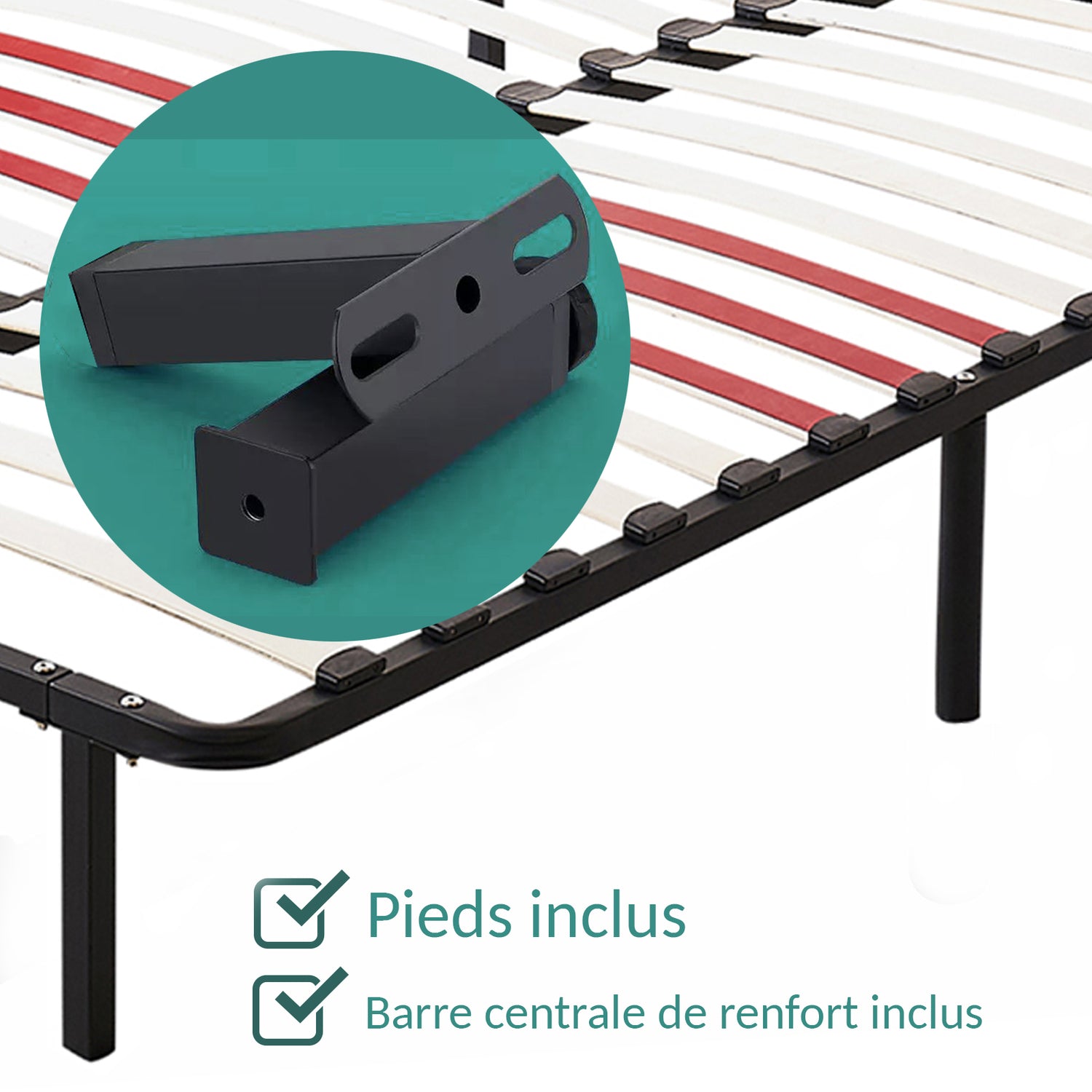 Der Lattenrost ist eine moderne und funktionale Bettlösung, die außergewöhnlichen Komfort und optimale Unterstützung die ganze Nacht über bietet. Es besteht aus einem soliden Metallrahmen und ist mit robusten Füßen ausgestattet. Es gewährleistet perfekte Stabilität und ist gleichzeitig leicht und einfach zu installieren. Dieser Bettrahmen kann allein oder in Kombination mit einer Bettumrandung verwendet werden und bietet große Flexibilität bei der Gestaltung entsprechend Ihren Wünschen.