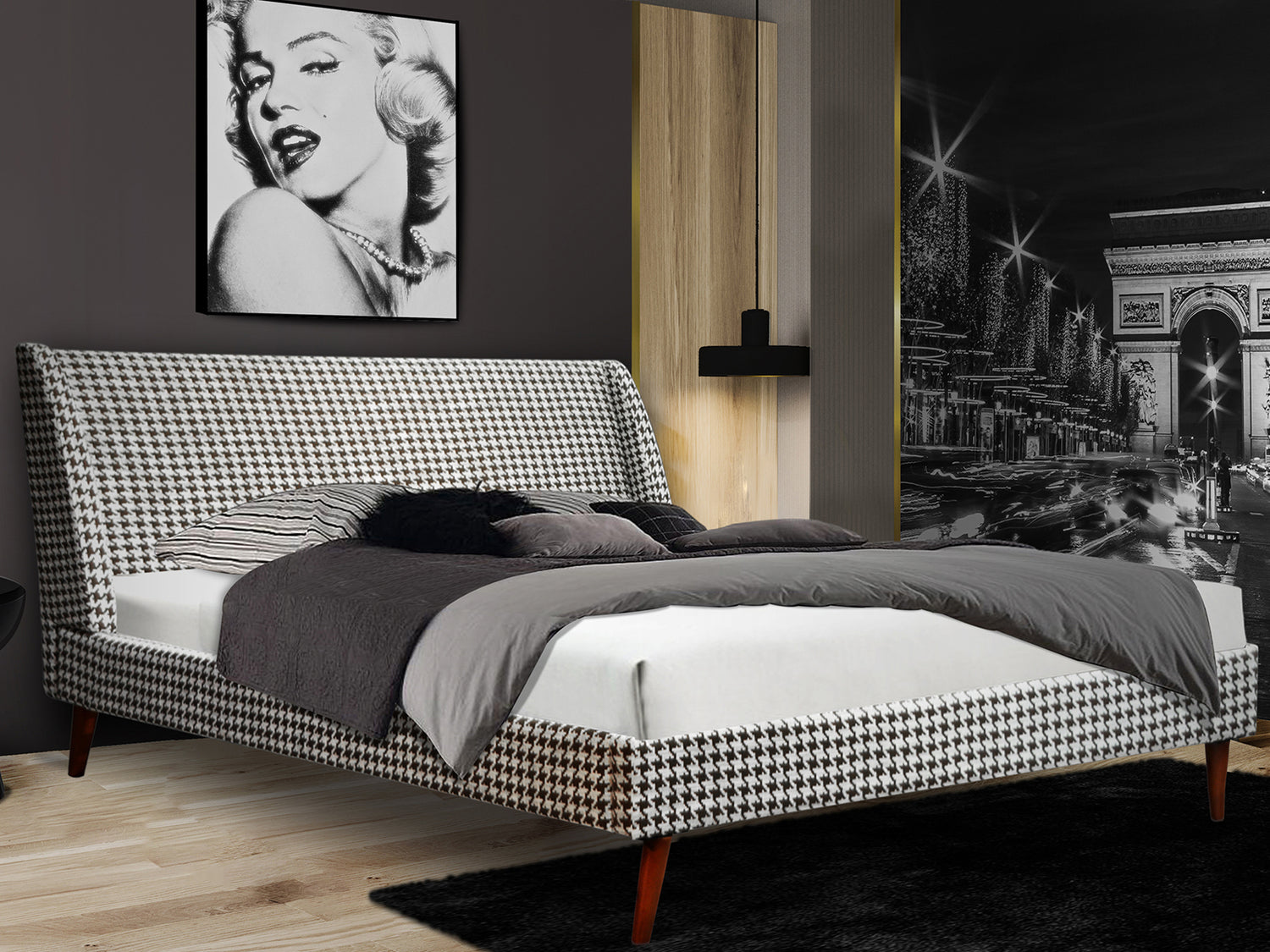 Le lit Coco s’impose comme une pièce maîtresse de votre chambre. Inspiré des années folles, il associe le charme rétro à une sophistication intemporelle. Son revêtement en tissu de qualité, habillé du motif iconique "pied de poule", crée une atmosphère glamour et raffinée qui sublime instantanément votre espace. Véritable alliance entre style vintage et confort moderne, ce lit transforme chaque nuit en une expérience élégante et reposante.