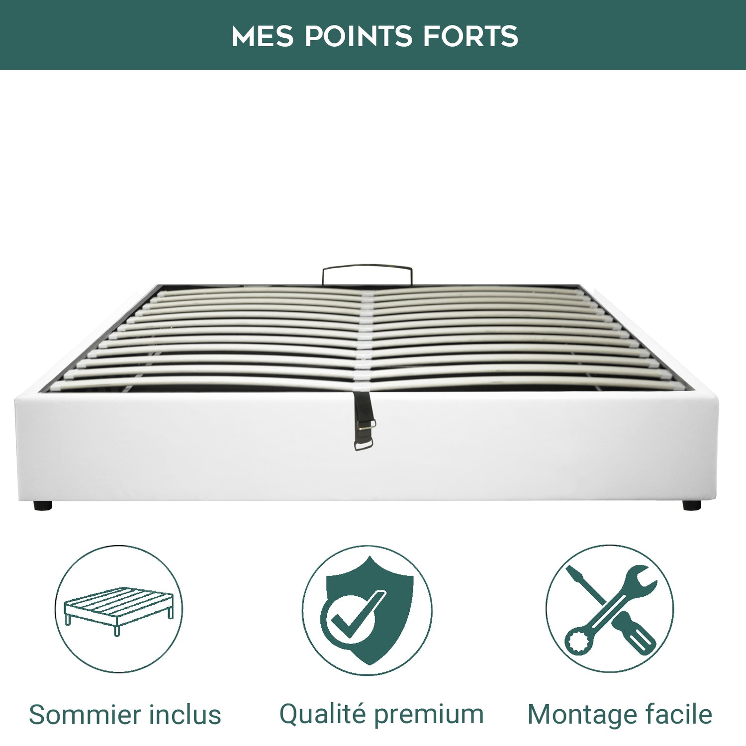 - Coffre de grande capacité pour optimiser l’espace et ranger linge de lit ou affaires volumineuses