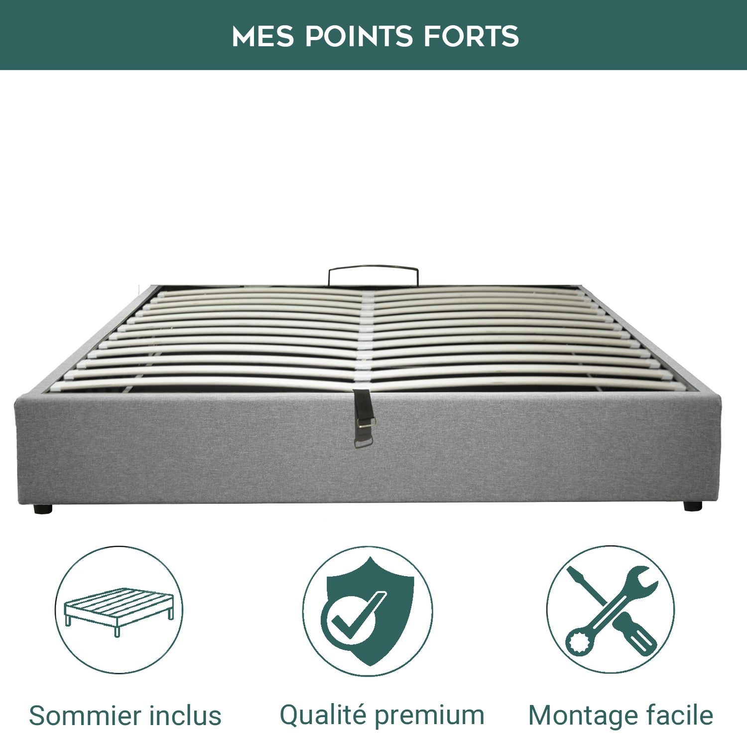 - Coffre de grande capacité pour optimiser l’espace et ranger linge de lit ou affaires volumineuses