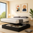 - Ouverture horizontale pratique : le sommier se relève parallèlement au sol, pour un accès total et sans effort au coffre de rangement.