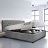 Lit coffre sommier relevable Monceau capitonné chic : tissu ou simili cuir et sommier à lattes en bois flexibles