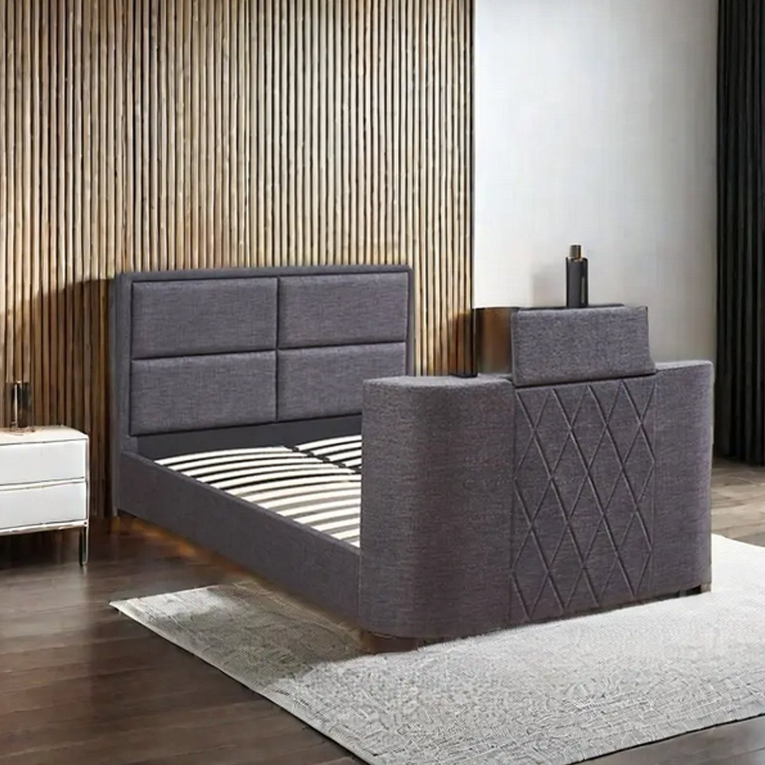 Le lit Palace TV combine design moderne, confort et technologie. Son revêtement en tissu gris apporte élégance et chaleur à votre chambre, tandis que son système TV intégré transforme vos moments de détente en une véritable expérience cocooning. Grâce à son mécanisme motorisé discret et simple d’utilisation, vous profitez de vos films et émissions préférés sans encombrer l’espace ni sacrifier le style.