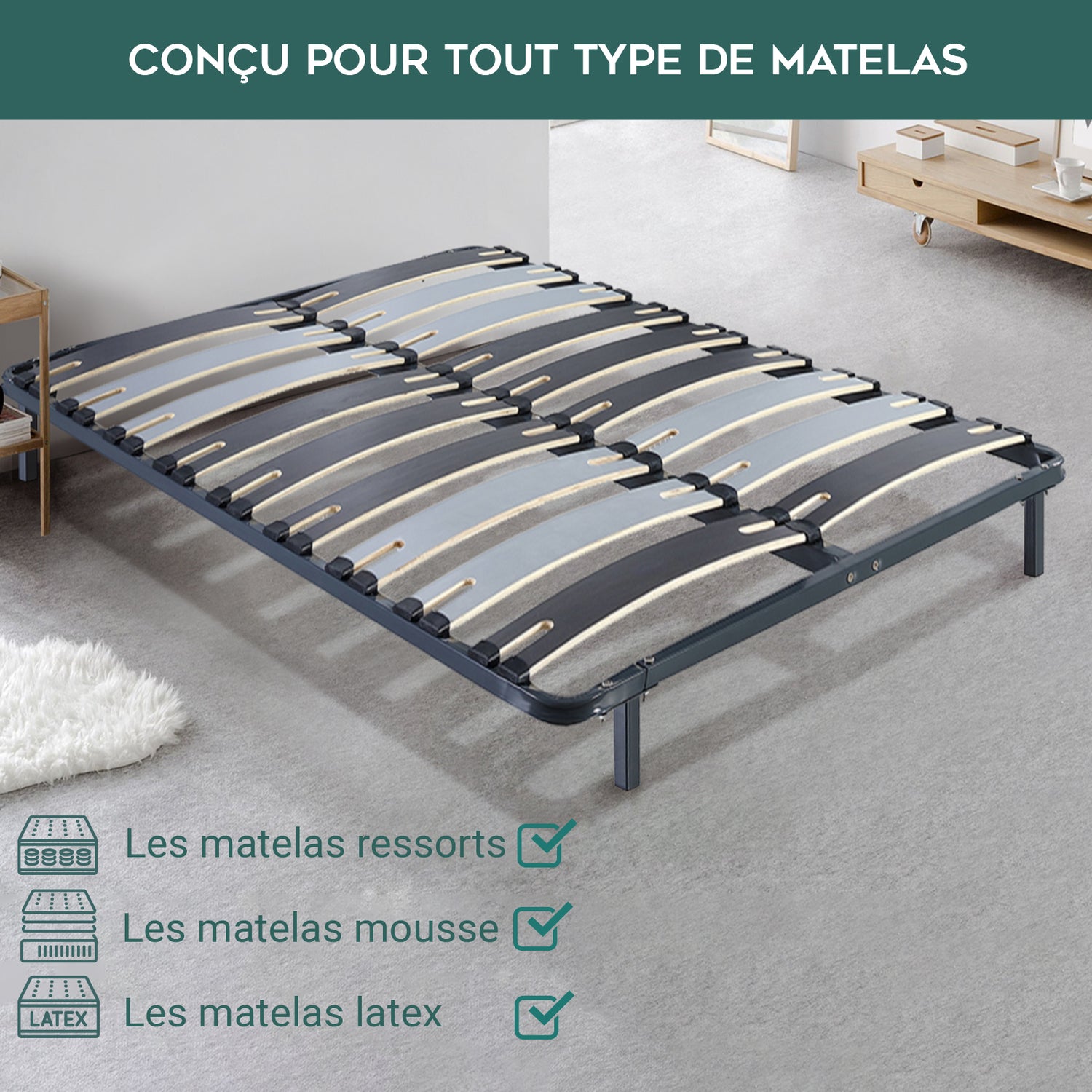 Sommier à lattes larges flexibles et résistantes s'adaptant à tout type de matelas